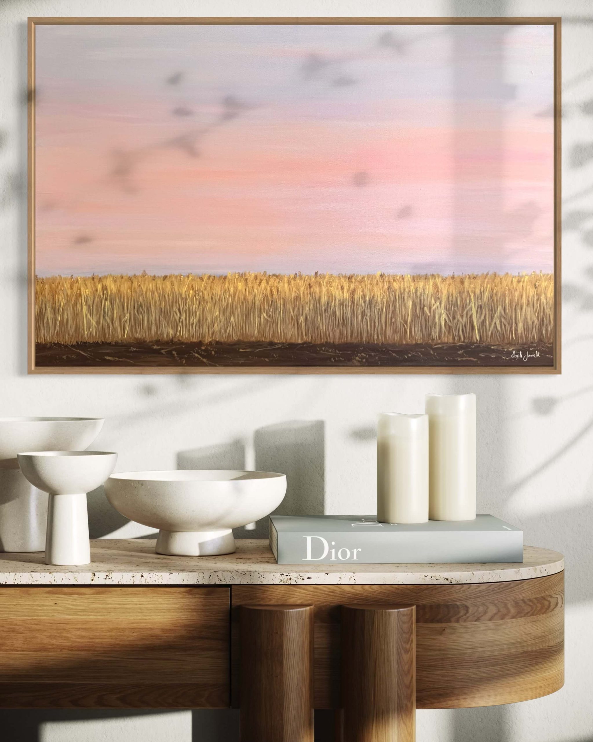 A serene landscape with a pastel sky meeting a golden wheat field, capturing the essence of tranquility.